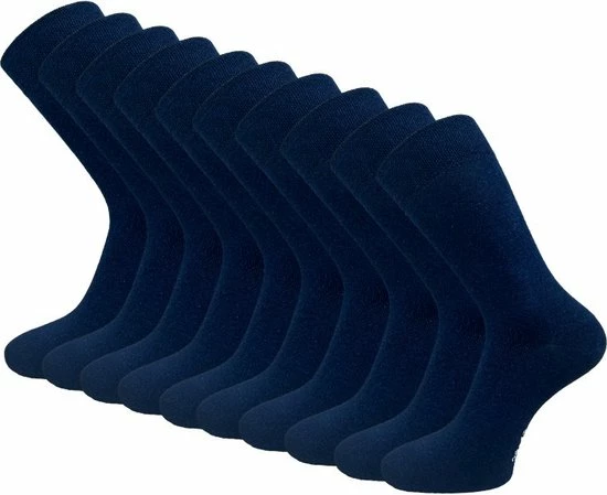 Set van 10 paar basic sokken in de kleur marineblauw van het merk Vansenzo. Deze sokken zijn geschikt voor zowel dames als heren. De sokken zijn gemaakt van een zachte katoenmix, hebben een comfortabele stretch en een verstevigde teennaad. De sokken hebben een elastische boord waardoor de sokken goed blijven zitten. Onderop de voet is de sok voorzien van een handige maataanduiding. Ideaal voor na het wassen, zodat de sokken gemakkelijk op maat kunnen worden gesorteerd. Deze sokken zijn een ideale basic voor iedereen die er dagelijks stijlvol uit willen zien. De sokken worden geleverd in een voordeelverpakking van 10 paar.