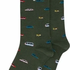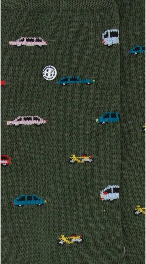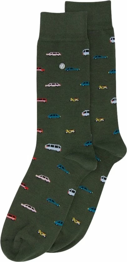 Sokken met allerlei auto’s, van kleine modellen tot een grote Cadellc in diverse kleuren.