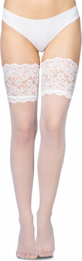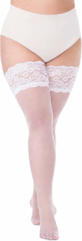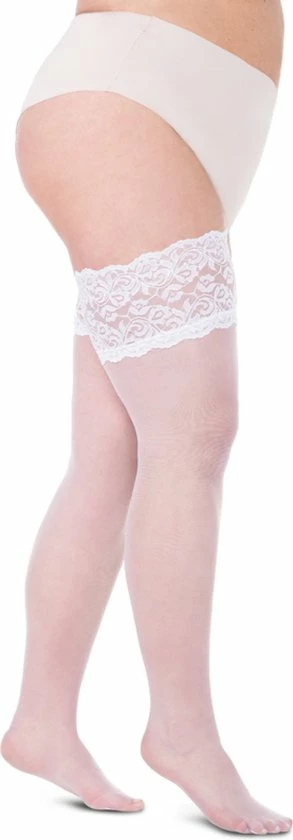 Annes dunne matte Hold Up Kousen Cecile 20 denier met extra brede kanten rand, wit maat XL/XXL (5/6)
