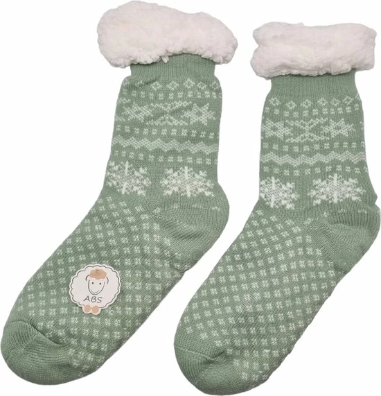 Antonio Huissokken – Sneeuwvlokken – Groen Wit – Dames – Antislip ABS – One Size (35-42) – Hüttensocken – Warme Sokken – Warme Huissok – Sloffen