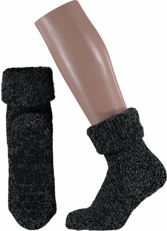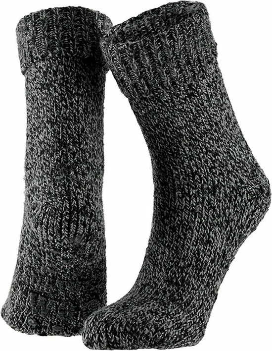 Dames anti-slip wollen huissokken/slofsokken zwart maat 39-42. Warme comfortabele huissokken met anti-slip rondjes aan de onderzijde/zolen.