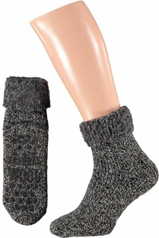 Jouw voeten blijven heerlijk warm dankzij deze gebreide dames huissokken van duurzaam gerecycled wol met een gebrushte binnenkant. Ze zijn lekker dik en zacht en hebben een natuurlijke en huiselijke uitstraling in mooie mouliner basiskleuren. Het functionele antislip profiel op de voetzolen zorgt dat je ook grip hebt op een gladde vloer. De perfecte pasvorm maakt deze sokken bijzonder comfortabel om te dragen. Apollo, your everyday basics.