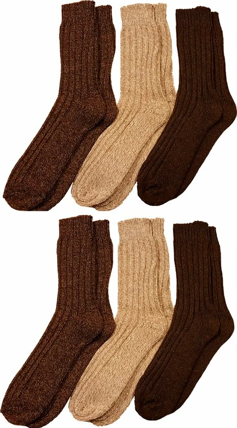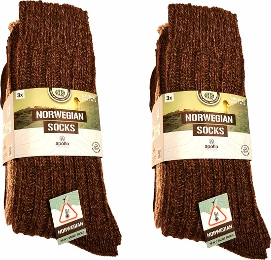 Apollo Noorse Wollen Sokken 6 Paar Bruin Assorti Maat 39/42