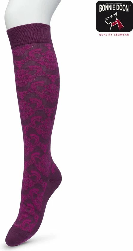 Bonnie Doon Dames Bloemen Kniekousen Donker Paars Maat 36/42 – Knie Kousen – Gebloemd Patroon – Bloemen Print – Uitstekend Draagcomfort – Ornament Knee High – Kniesokken – Zakt Niet Af – OEKO-TEX – Crushed Violets – BP221701.4