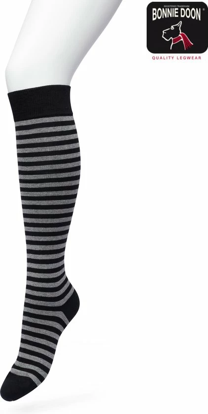 Bonnie Doon Dames Gestreepte Kniekousen Zwart/Grijs Maat 36/42 – Knie Kousen – Streep Patroon – Strepen Print – Uitstekend Draagcomfort – Basic Stripe Knee High – Kniesokken – Zakt Niet Af – OEKO-TEX – Black – BP211511.2