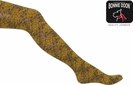 Bonnie Doon Panty Met Kant 60 Denier Geel Dames Maat 42/44 XL – Kanten Bloem Motief – Tekent Niet – Bloemen Print – Chique Bloemenprint – Gladde Naden – Maximaal Draagcomfort – Oker Geel – Goud – Old Gold – BN251966.15