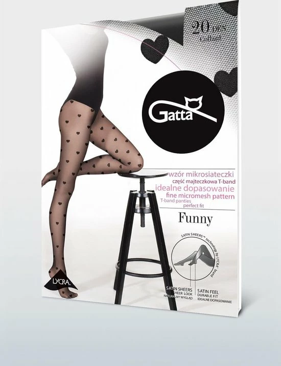 Deze unieke panty’s Funny 08 is een model gemaakt met de aandacht voor detail. Dames panty’s van micro- mesh met een patroon in de vorm van harten, gemaakt van gevlochten Lycra-garen, transparant, mat, zonder broekedeelte, met een klein kruisje. Door het gebruik van de hoogste kwaliteit LYCRA®-garen, kunt u gemakkelijk genieten van hun perfecte pasvorm op uw benen zonder ongewenste vouwen.
