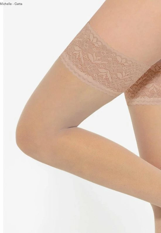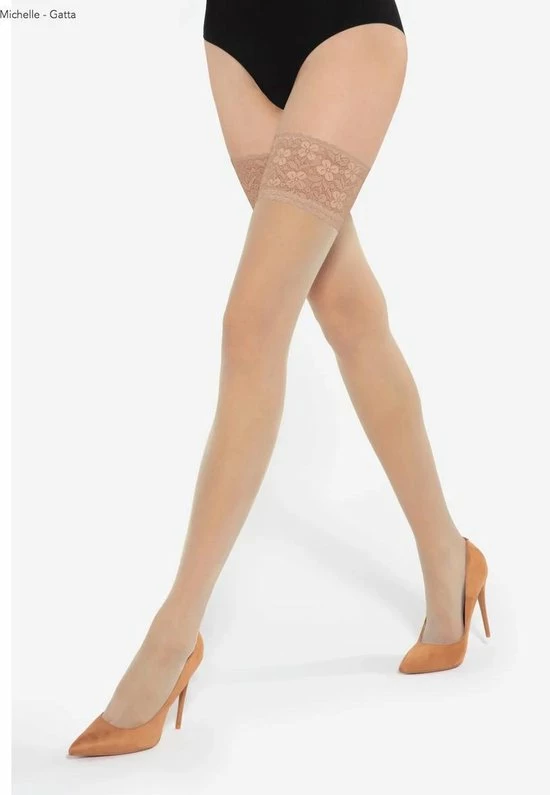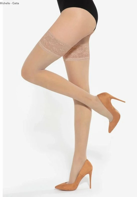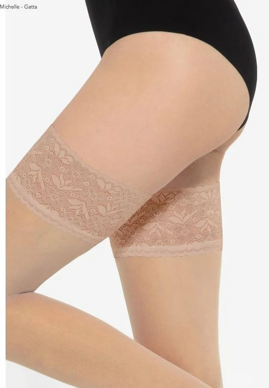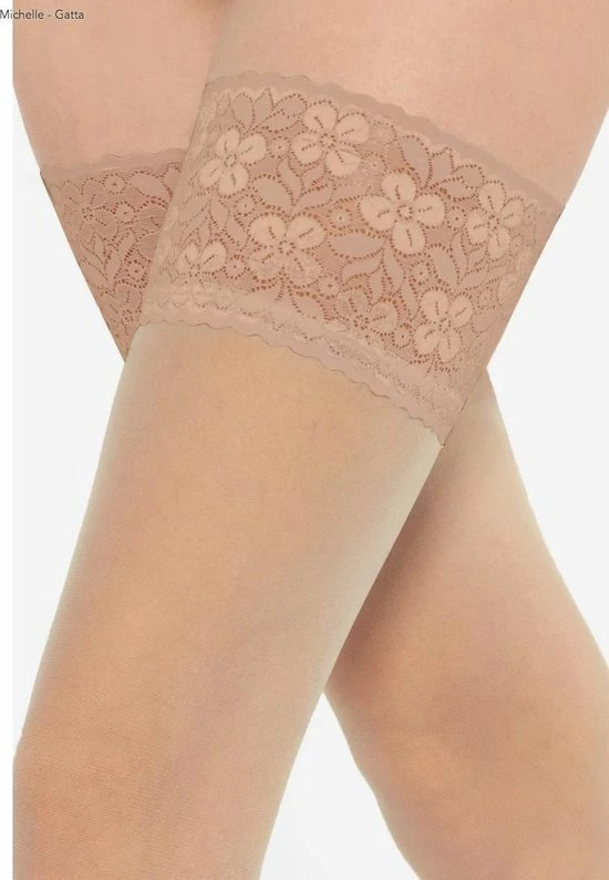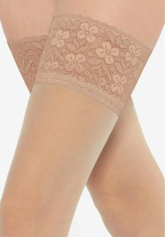 Hold Up kousen in transparante matte van 20 denier- kwaliteit. Gemaakt van lycra garen met zachte kanten boord met brede rand. De kousen hebben een siliconenrand waardoor ze mooi blijven zitten. De kous beschikt over een hoog draagcomfort zonder versterkt teengedeelte.