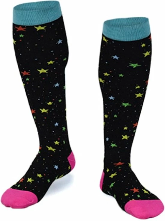 Compressiesokken – compressie sokken – kousen – zwart – print sterren – L / XL