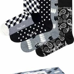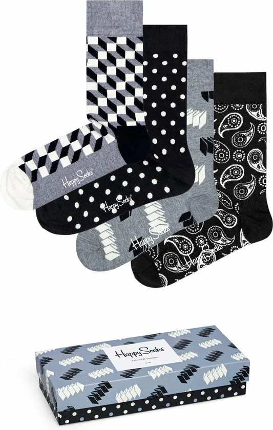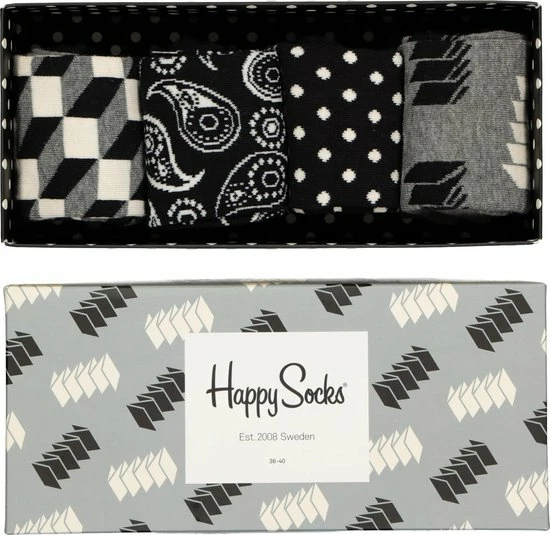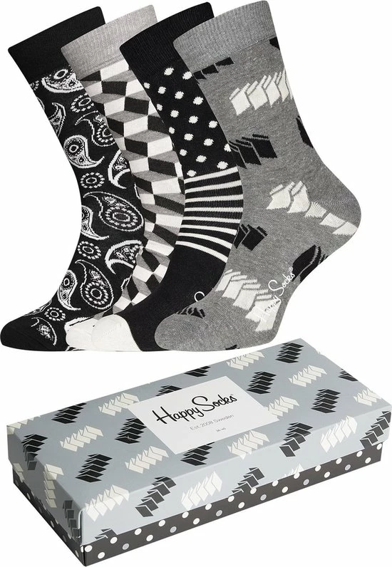 Happy Socks – Gift Box 4-pack Sokken Optic Zwart / Wit / Grijs – 36-40