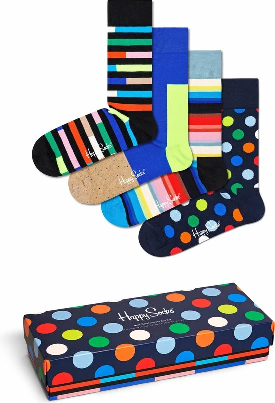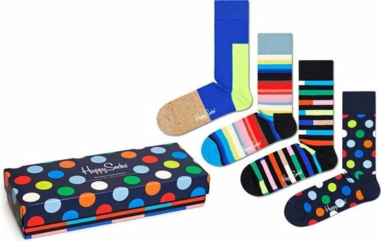 Deze sokken van Happy Socks zorgen voor blije voeten en ze zijn altijd goed voor een lach. Ze zijn kleurig en super vrolijk maar toch heel draagbaar. Combineer de sokken casual met een jeans en stoere schoenen, maar ook onder een zakelijke outfit geven deze kleurige sokken een hele eigen look aan uw outfit. Gemaakt van natuurlijke materialen dat aangenaam zacht aanvoelt voor heerlijk comfort. Happy op je Happy Socks! Deze sokken zijn ook het ideale cadeau voor hem of haar.