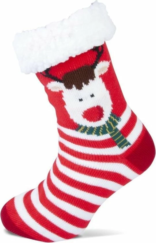 Heerlijke warme HomeSocks met Rudolf het rendier. Lekker coshy bij de openhaard of de verwarming. Echt geen koude voetjes meer met deze heerlijke warme Homesocks en ook nog eens met een Antislipzool. Dragen als pantoffels. Niet alleen de binnenkant is heerlijk zacht door zijn voering, ook de buitenkant van de sok is om te knuffelen. Ga jij lekker met deze sokken het kerstdiner in tijdens die heerlijke feestdagen? De maat is One Size (36/42)