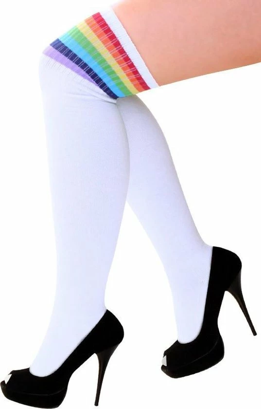 Maak jouw outfit nu compleet met deze witte kniekousen met rode streepjes! Deze sokken tot aan de knie kun je dragen bij veel gelegenheden: als voetbalsokken, hockeysokken, rugbysokken, sportsokken, onder je rockabilly outfit, college outfit, cheerleader outfit, tiroler lederhosen, naar een festival in je sneakers, thuis op de bank of elke gelegenheid die jij maar kunt verzinnen!