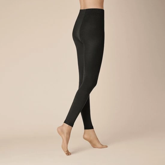 Dames legging met merinowol aan de buitenkant en katoen aan de binnenkant. Deze combinatie geeft een uitstekende vochtregulatie. Het comfortboord is niet knellend.