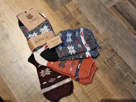 3 Paar 100% Alpaca Wollen Sokken in de kleuren Grijs, Bruin/Oranje en Bruin/Rood. Maat 38-42. Thermo. Leuk als Sinterklaas geschenk of als Kerstgeschenk. Sokken bestaan uit 100% Alpaca Wol zijn dus heerlijk zacht en warm om te dragen.