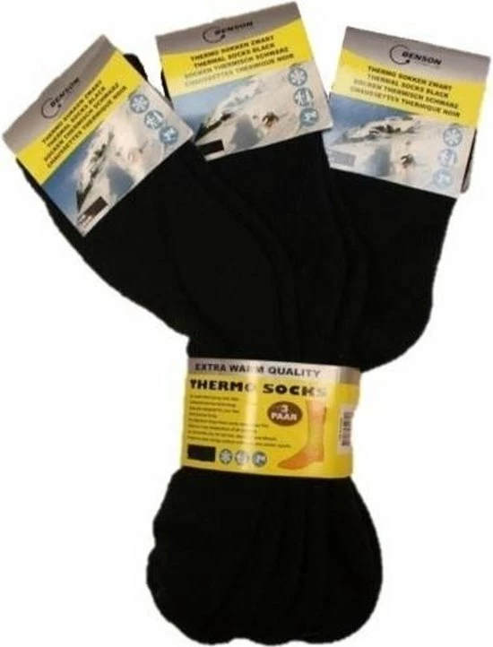 Merkloos 6x Thermo Sokken Zwart / 3 Paar In Maat 43-46 – Warmte Sokken Voor Koude Voeten – Thermosokken