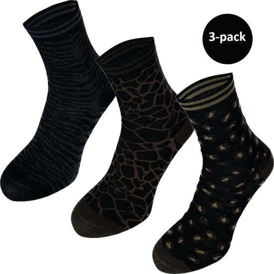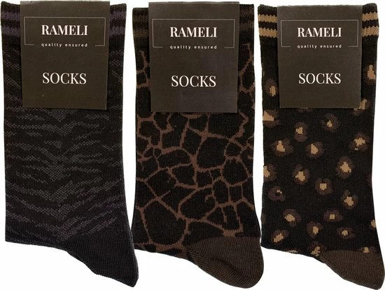 Merkloos Rameli Dames Sokken Dieren Print – Zonder Voelbare Teennaad – 3-pack – Bruin/Zwart – Maat 36-41