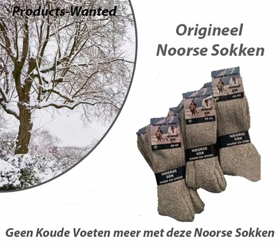 Highlights: * 6 paar * Merk: Noorse Sok * Maat 39-42 * Kleur: melange grijs * Materiaal: mix van wol, polyamide, katoen en polyester * Wasadvies: 30 graden * Zeer goede kwaliteit sokken * Beat the winter * Duurzaam * Zeer aangename en comfortabele pasvorm voor alle soorten voeten * Anti transpiratie door hoog katoen gehalte * Zonder drukkende naad op de tenen * Voor mannen en vrouwen * Met deze Noorse sokken ben je verzekerd van heerlijke warme voeten. Of je nu buiten de tuin aan het doen bent, een winterwandeling maakt of aan het schaatsen bent, jij krijgt met deze sokken geen koude voeten meer. Maar ook thuis op de bank of voor de haard zijn deze sokken ideaal. Tevens perfect te gebruiken als vervanging van pantoffels of sloffen. De sokken zijn van uitstekende kwaliteit, dus zeer geschikt voor intensief gebruik. Het is een lang model sok met brede kabel-breisel. De sokken zijn gemaakt van wasbare wol voor uitstekende warmte en heerlijke zachtheid. .