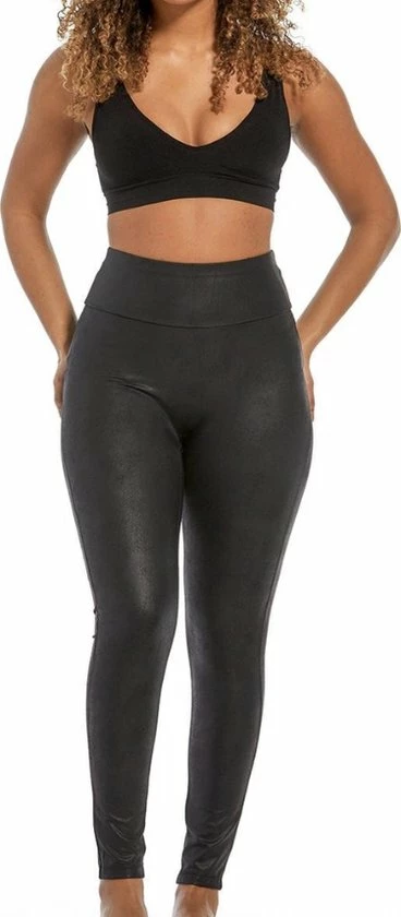 Merkloos Zwart Lederlook Legging Dames Volwassenen- Grote Maten – Legging Dames – Legging Lederlook – Legging Dames Leather – High-Waist Dames Hoge Taille – Push-Up – Up-Fit- Maat 4Xl – 5XL