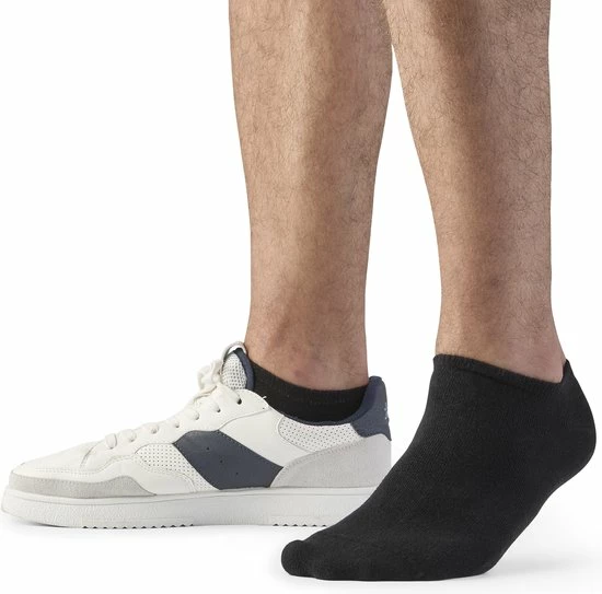De sokken zijn komen boven de meeste schoenen uit en hebben een prettige pasvorm. Door de ideale stofsamenstelling, van katoen en elasthaan, zorgt deze sok voor het beste comfort in combinatie met de beste kwaliteit. De enkelsokken hebben een naadloze afwerking aan de voorkant van de sok waardoor er geen stikrand op de bovenkant van de tenen drukt. Door toevoeging van elasthaan aan de sokken blijven de sokken mooi in model na enkele wasbeurten.