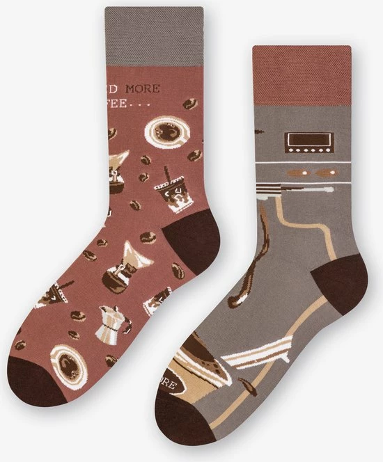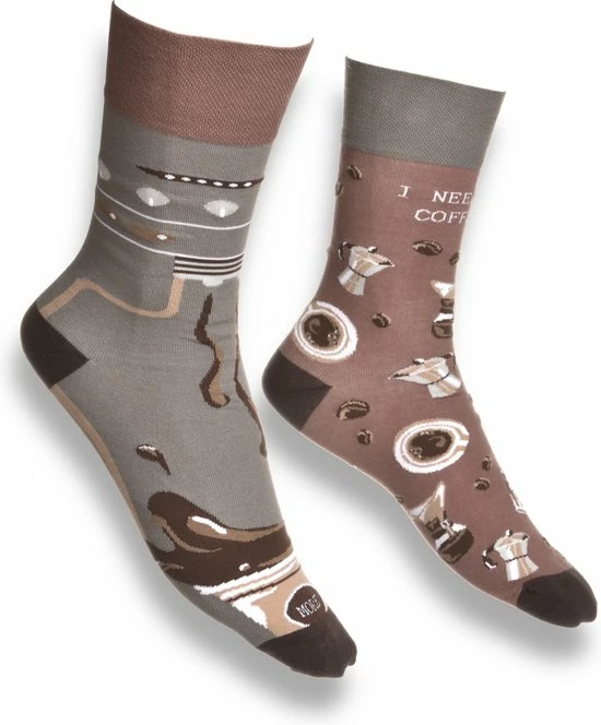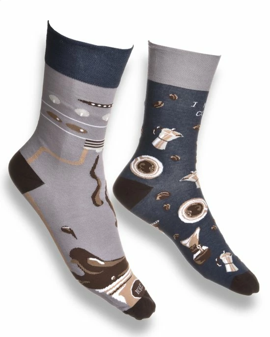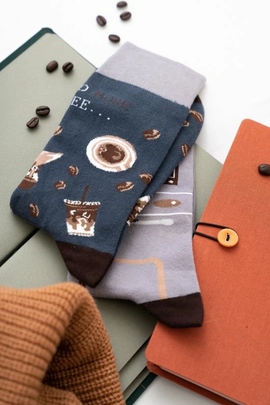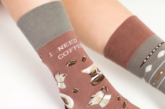 Een set van 4 paar dames sokken met een bijzondere print die verwijst naar een lekkere koffiepauze – Maat 35/38 – Hoogste kwaliteit – 100% vervaardigd in de EU