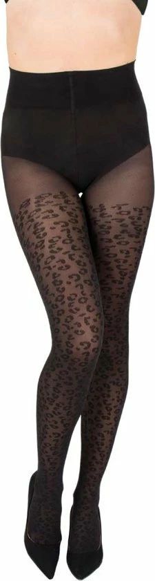 Deze panty heeft een fancy panter patroon en een mooie “french cut”, waardoor hij perfect past onder korte rokjes en jurkjes. Het broekje is verstevigd, waardoor hij een shapend effect heeft; het corrigeert de buik. Broekje is hoog uitgesneden, speciaal voor onder korte rokjes.