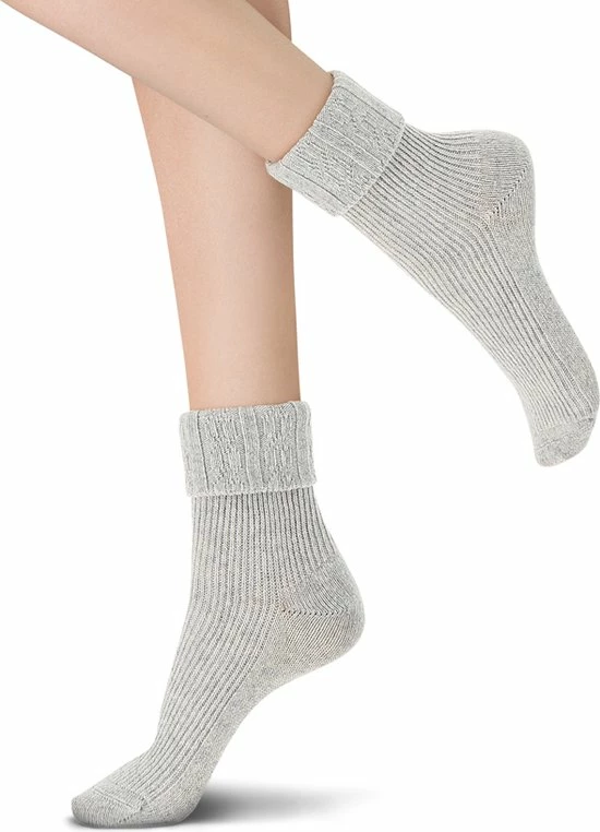 Zijdezacht wol-kasjmier sokje met een kabel-patroon.