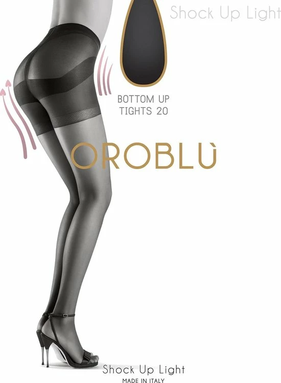 De Shock Up 20 is een 20 denier transparante panty met push-up effect voor de billen en een shapende werking voor buik, heupen en dijen. De panty heeft een subtiele satijnglans.