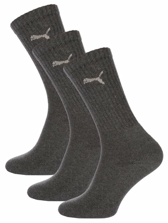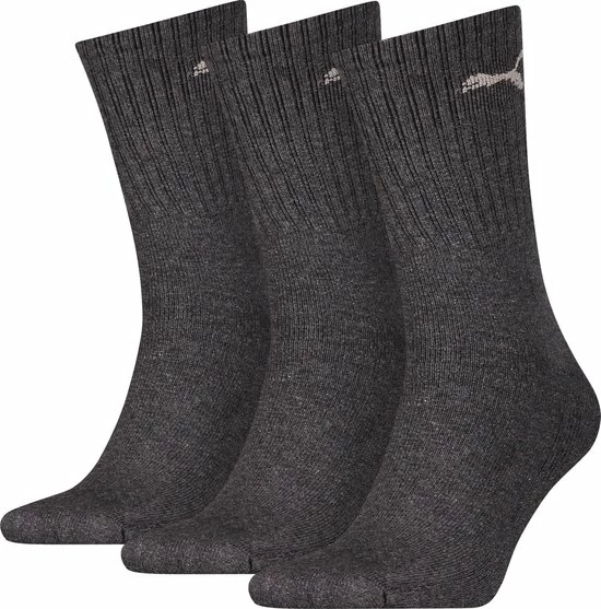 De klassieke PUMA sportsok 3-pack zijn de perfecte sportsokken. Het ribmotief aan de bovenzijde en extra versteviging bij de zool en tenen zorgen voor de perfecte fit. Het zachte katoen en de platte naden zorgen daarnaast voor een ultiem draagcomfort. De sokken zijn verkrijgbaar in de kleur antraciet.