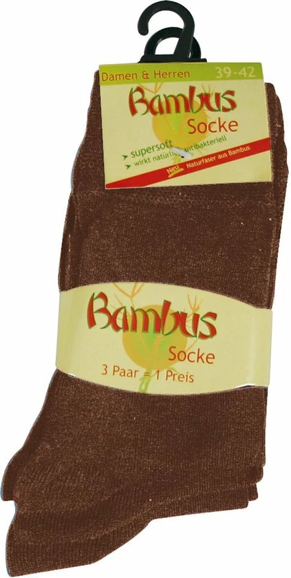 3 Paar bamboesokken met een normale schachtlengte, de sokken bestaan uit 75% bamboevezel.