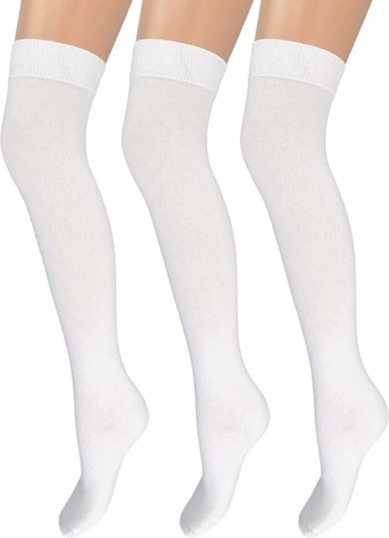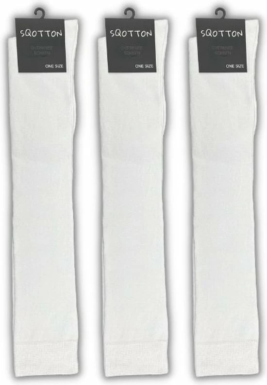 SQOTTON 3 Paar Overknee Kousen – Katoen – Wit