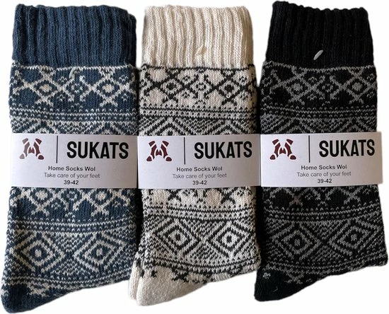Heb jij ook altijd last van koude voeten en ben jij op zoek naar comfortabele huissokken? Dan hoef je niet verder te zoeken. Deze 3 paar met wol uitgeruste winter sokken van Sukats zijn heerlijk om te dragen en zorgen ervoor dat je warme voeten krijgt. Dankzij de mix van Wol, Acryl en Polyamide biedt het veel warmte zonder dat je voeten gaan zweten.
