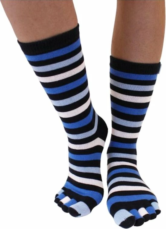 TOETOE Everyday Mid-Calf Gestreepte Teensokken – Blauw – 35-46