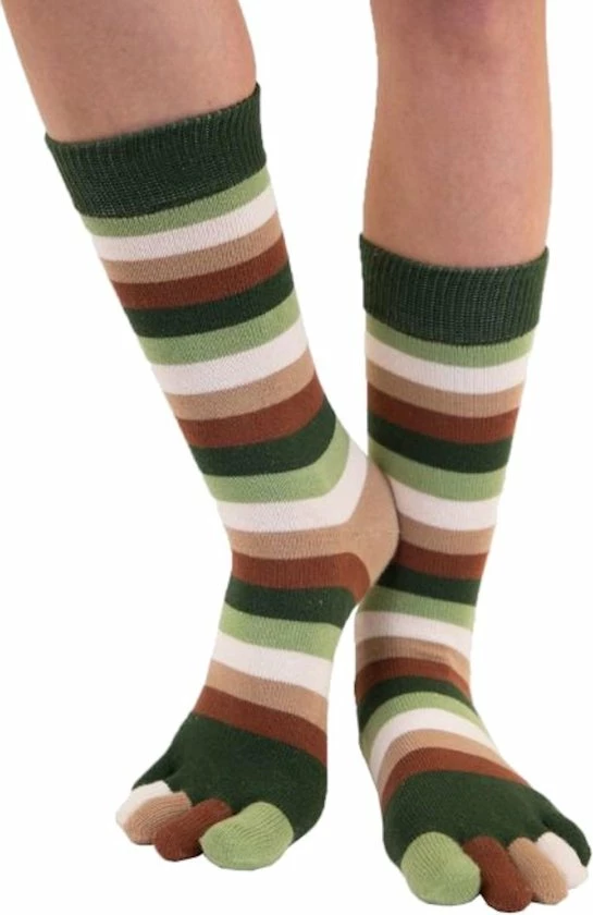 TOETOE Everyday Mid-Calf Gestreepte Teensokken – Bruin/Licht Bruin – 35-46