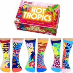 Sluit je ogen en voel de zon op je huid, hoor de zee in de verte kabbelen en het geluid van cocktails die worden ingeschonken. Al deze hete, tropische vibes zijn ver verwijderd van onze gebruikelijke zomer, maar ze kunnen van jou zijn elke keer dat je in onze Hot Tropics sokken stapt. Zie er geweldig uit, voel je goed en stap met je tropische vibes in deze fantastisch leuke sokken. De vakantie begint hier!