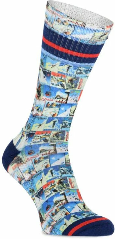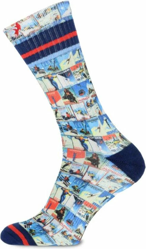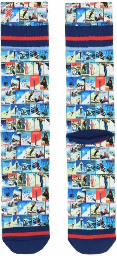 Heren sokken van XPOOOS en A fish named Fred. De sokken hebben een all over print in wintersport thema.